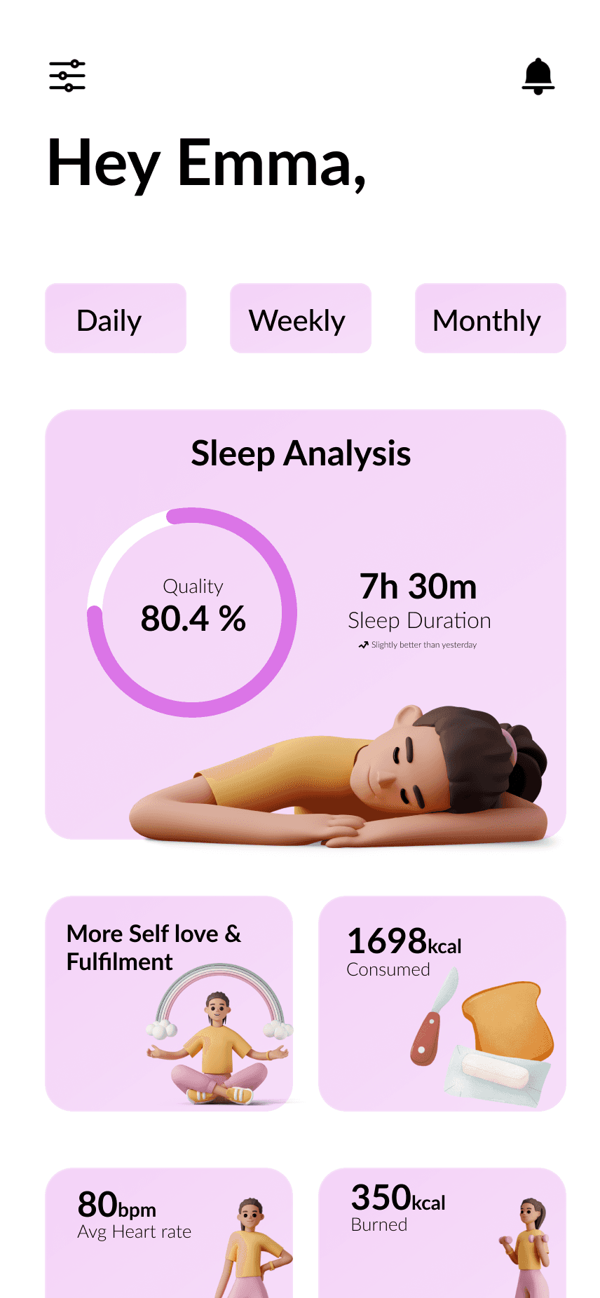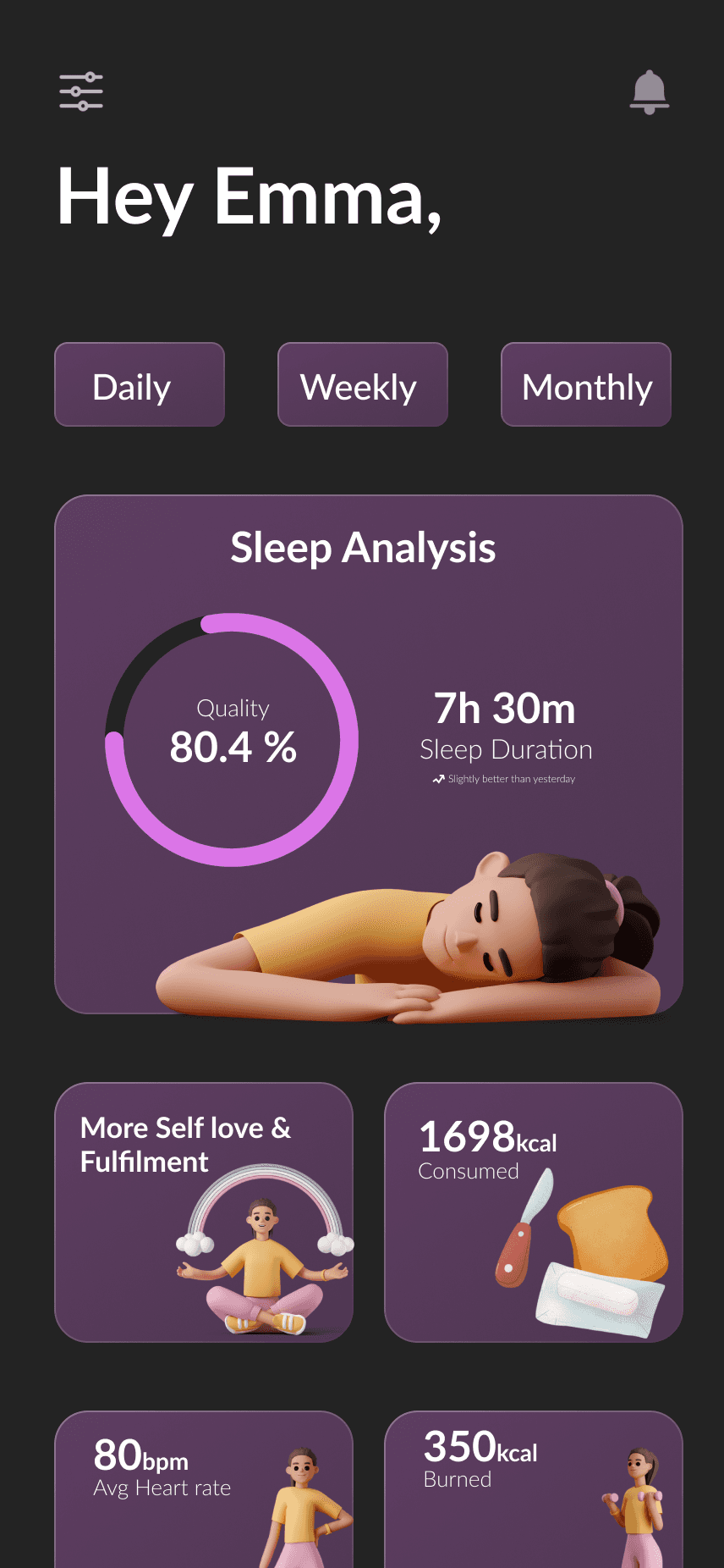 Delivered a cohesive, dual-theme wellness experience optimized for day and night use.