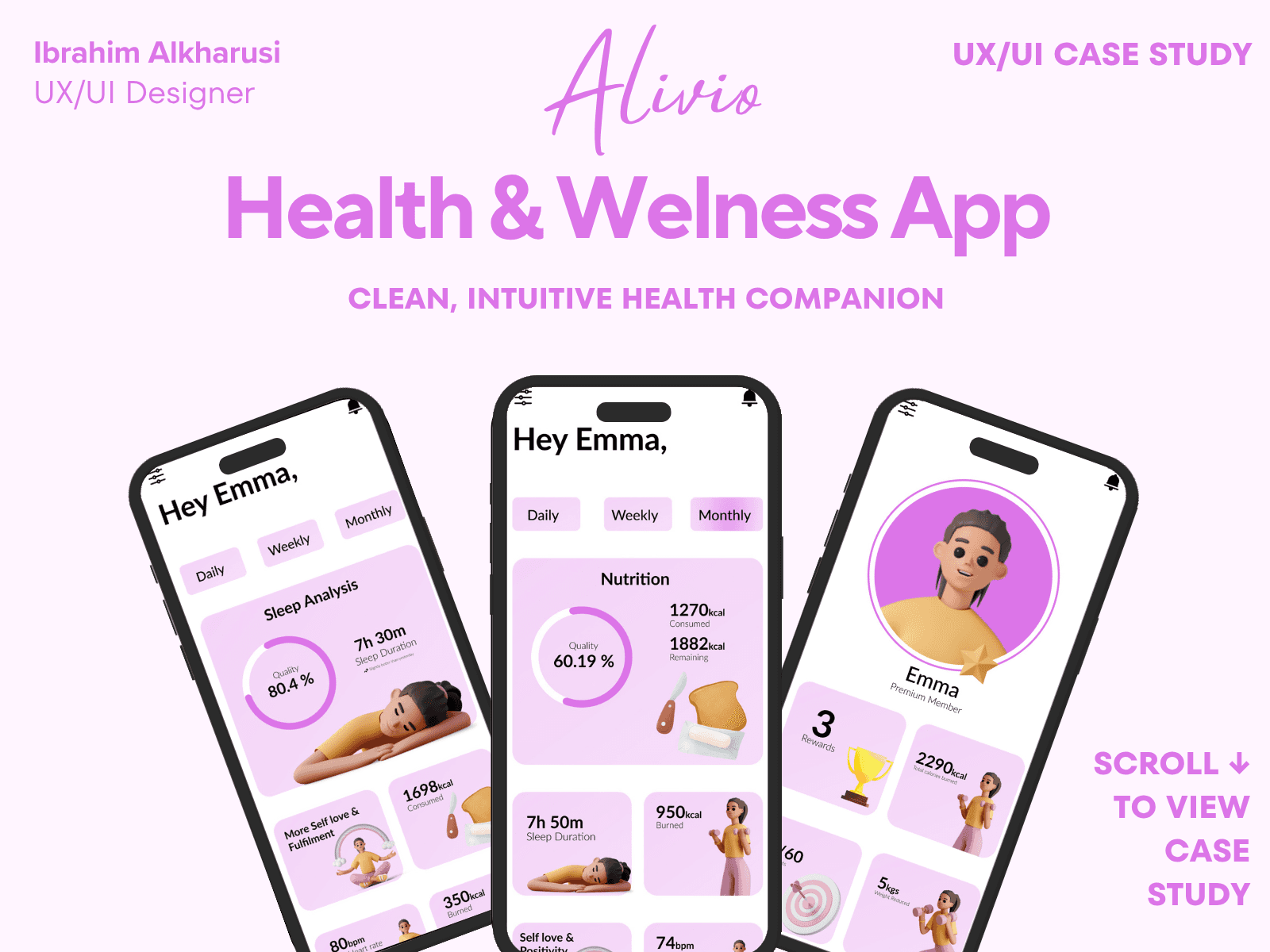 Alivio became a wellness platform that blends emotion tracking, habit support, and daily reflection into an experience that feels inviting, not clinical.