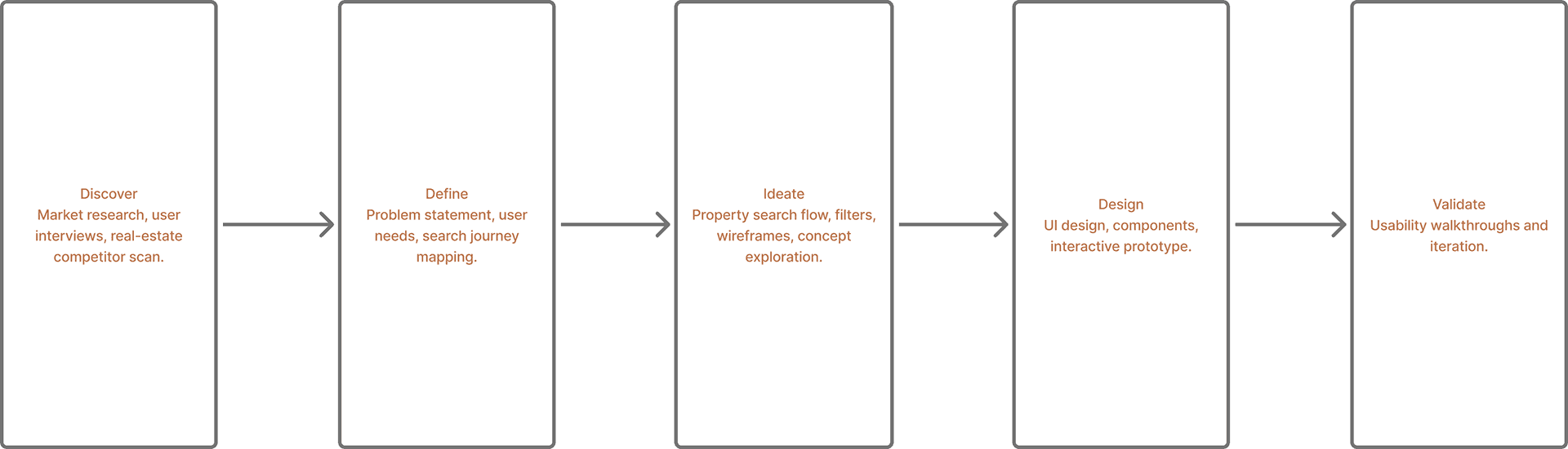 The final prototype improves scannability and navigation, letting users find properties 40 % faster in usability tests.