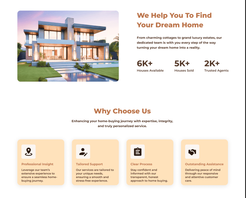 Create a clean, modern real-estate search experience that helps users quickly find suitable homes through smarter search, clear filters, and easy comparison.