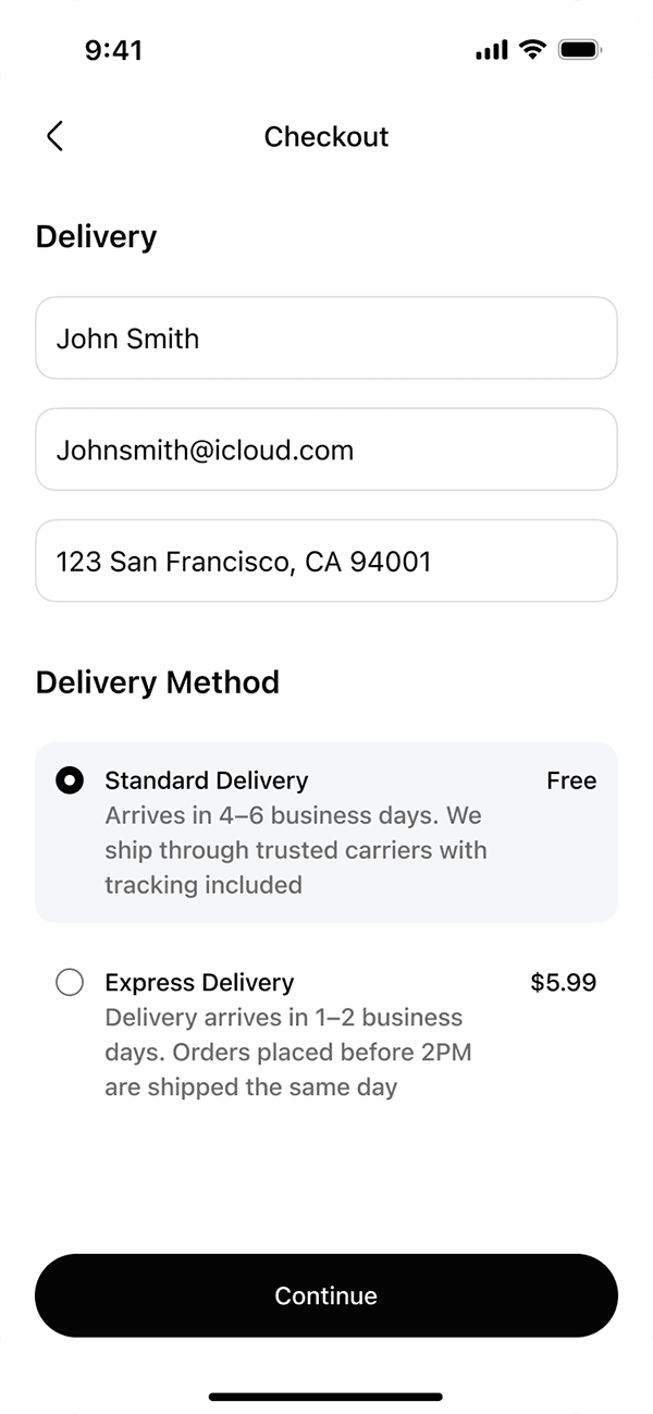 5. Designed interaction states and micro-animations to enhance clarity during checkout.
