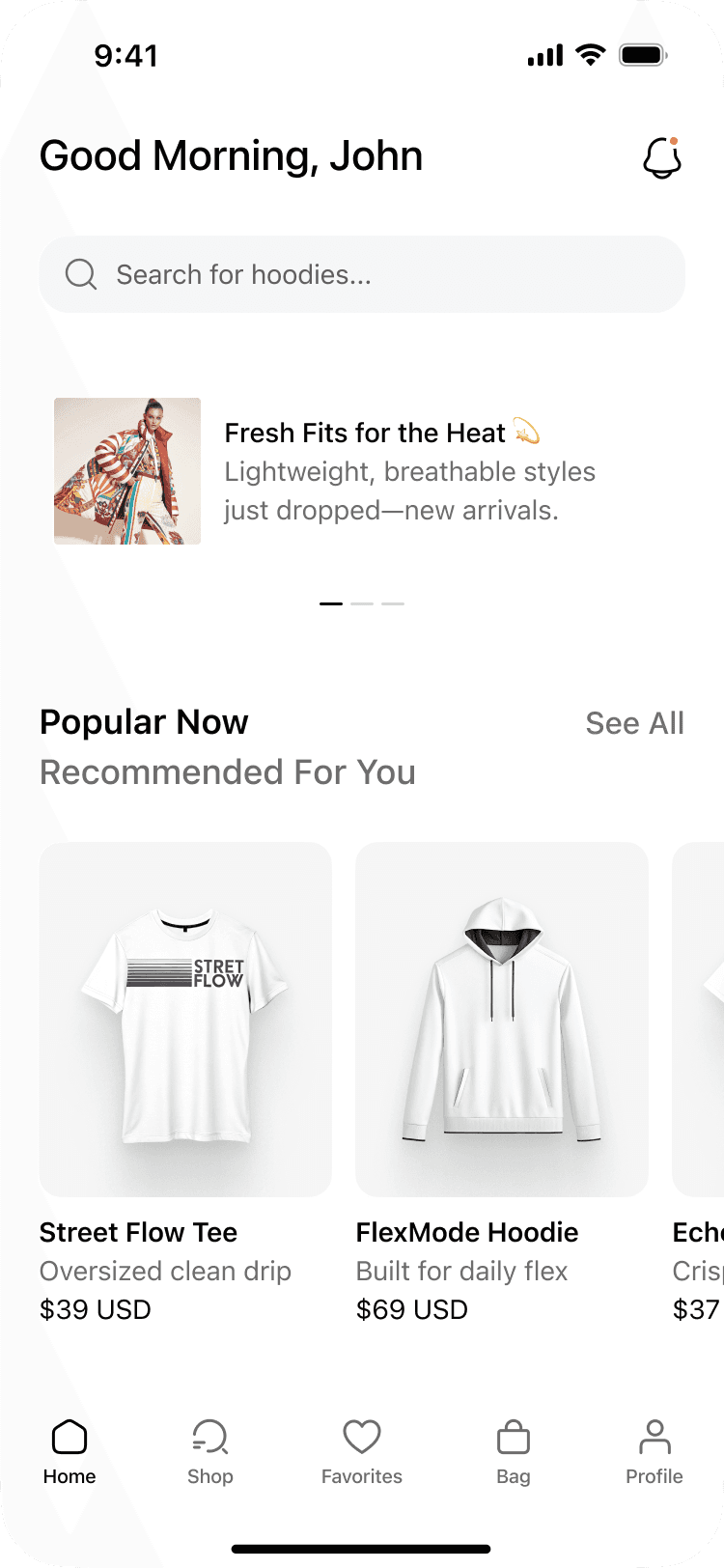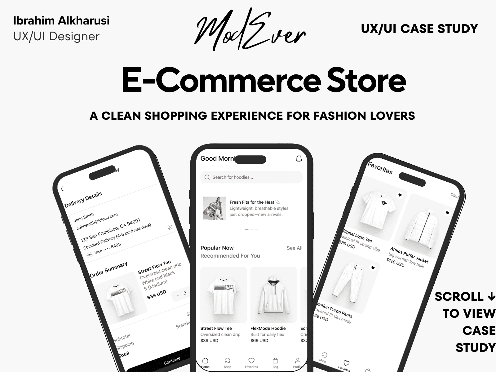 ModEver is a modern e-commerce mobile experience focused on simplicity, fast browsing, and smooth checkout. The goal was to create a shopping flow that reduces decision fatigue and improves product discovery.
